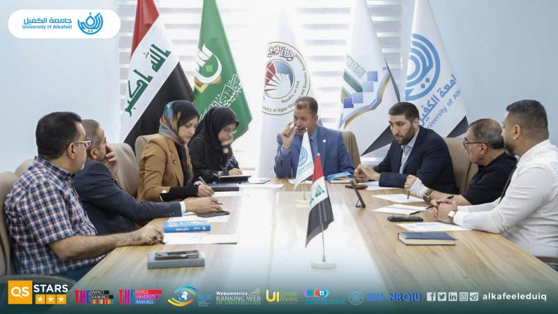 The College of Medicine at University of Alkafeel held its fourteenth council meeting in a constructive academic atmosphere, chaired by the Dean of the College, Asst. Prof. Dr. Samer Makki Al-Hakak, and attended by assistants and council members. The meeting discussed several important academic issues that serve students and enhance their educational journey.