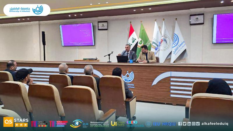 The lecture was delivered by Asst. Prof.Dr. Ahmed Baqer Sharba, Director of Lifelong Learning Center at University of Alkafeel , and Asst. Prof. Dr. Muhammad Zuhair Hassan, Director of University Performance Evaluation Section . Both of them presented a detailed presentation of the proposed plans and programs to develop work mechanisms and activate the role of continuing education in serving the academic and societal progress.