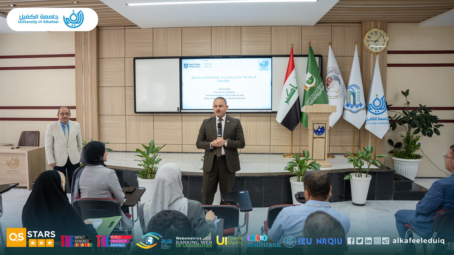 The College of Medicine at Al-Kafeel University continued its activities for the second and final day on Tuesday, September 16, 2025. The course was attended by the University President, Prof. Dr. Nawras Mohammed Shaheed Al-Dahan, and faculty members from the group of the medical colleges. There was an academic ambience that reflects the commitment of the university to advancing the level of medical education.