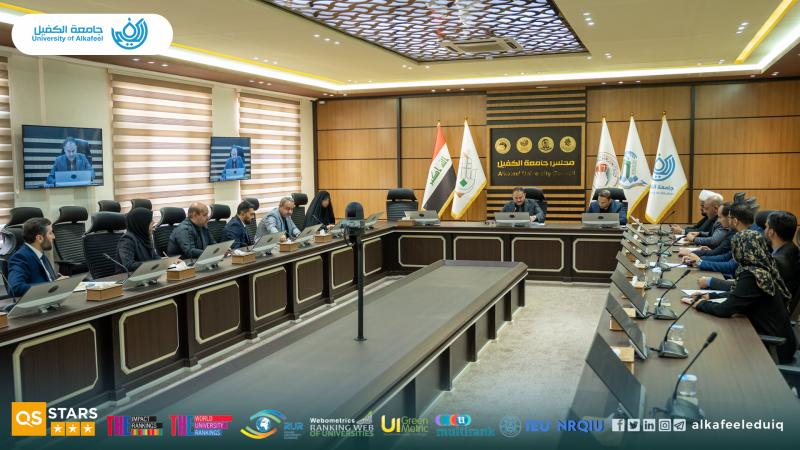The University of Alkafeel Council held its first session for the new academic year 2025-2026 on Wednesday, 1 October 2025, chaired by Prof.Dr. Nawras Mohammed Shaheed Al-Dahan, and attended by vice-chancellor for academic affairs , Prof.Dr. Nawal Ayed Al-Mayali, and the deans and assistants of the colleges.