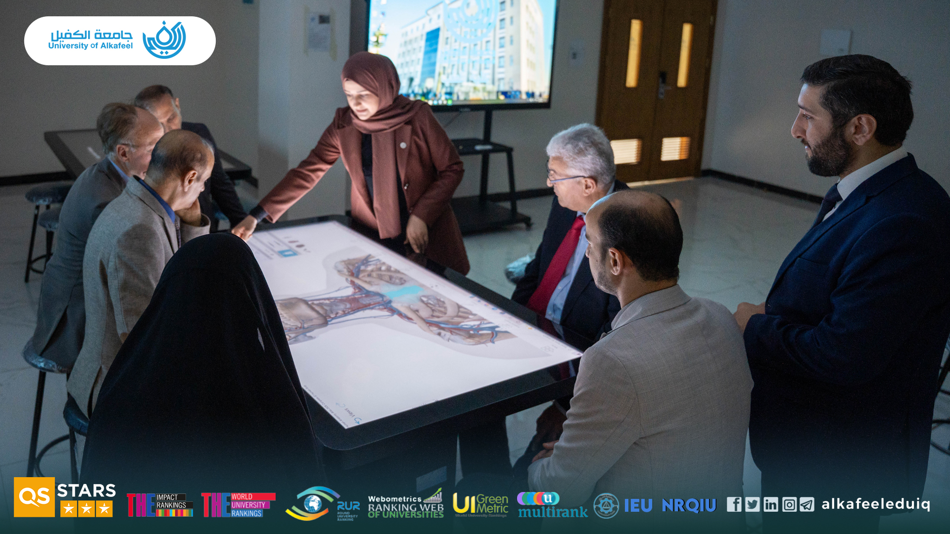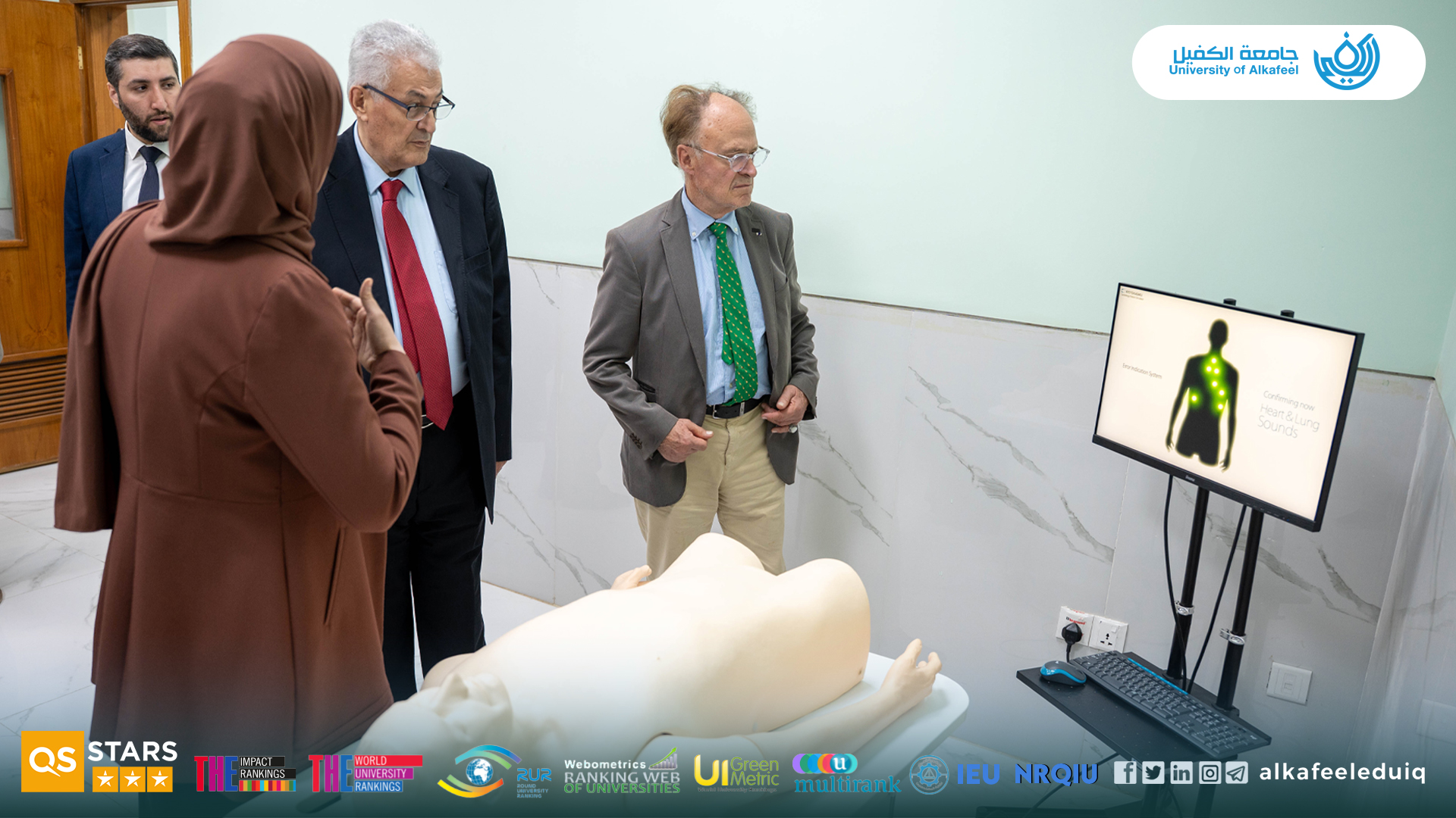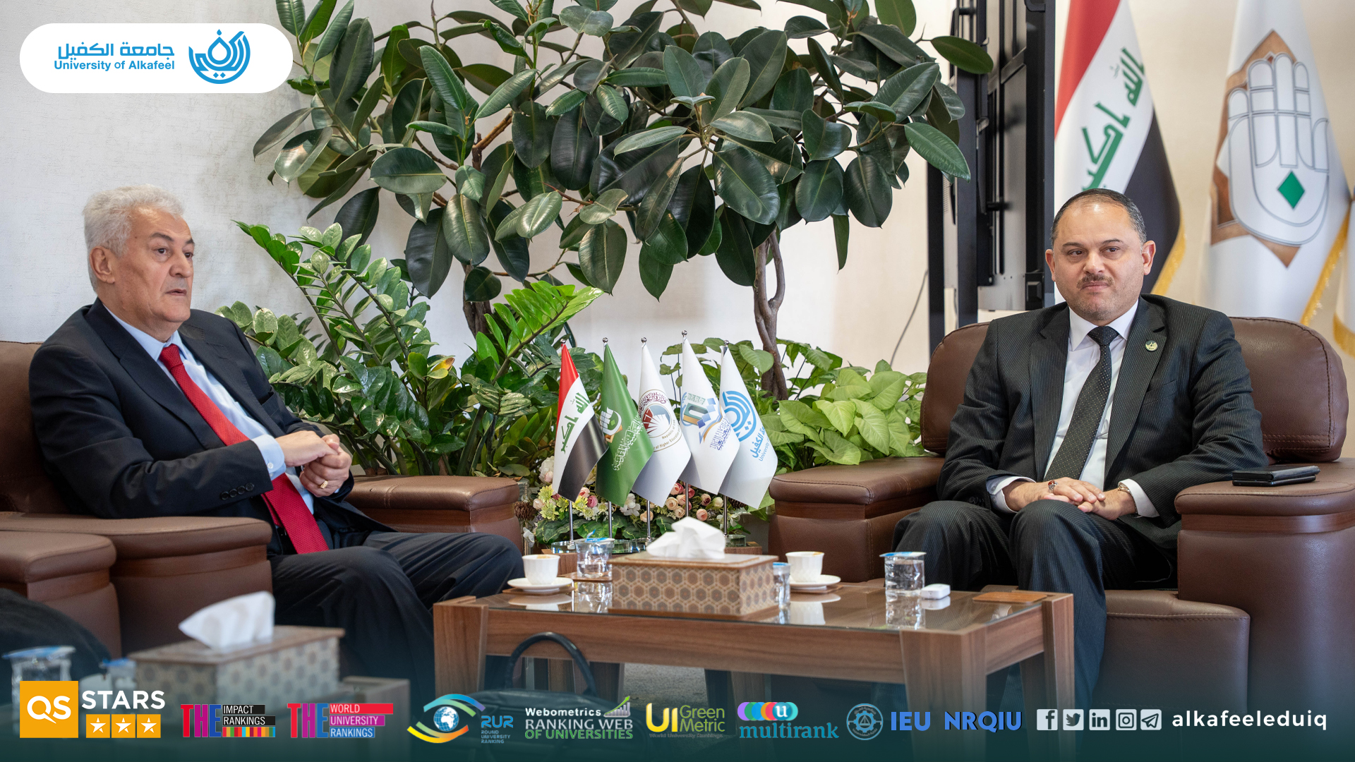 On Saturday, 4 October 4 2025, the President of University of Alkafeel , Prof.Dr. Nawras Mohammed Shaheed Al-Dahan, received a delegation from the Paris Academy of Geopolitics, in the presence of the vice-rector for scientific affairs , Prof.Dr. Nawal Ayed Al-Mayali . The visit aimed to discuss horizons of academic and scientific cooperation between the two sides and enhance the exchange of expertise and knowledge, which would contribute to the development of university performance and communication channels with international academic institutions.