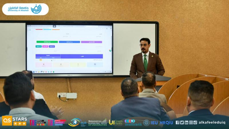 The College of Medical and Health Technologies held a training workshop by Asst.Lect. Hussein Ali Hussein on Monday, 27 October 2025, to familiarize members of the attendance committee with the proposed electronic program for tracking absences and enhancing accuracy in records.