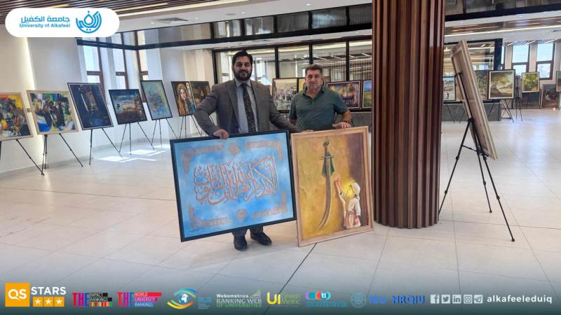 In line with the directives of the Ministry of Higher Education and Scientific Research to support the Iraqi artistic and cultural movement, University of Alkafeel participated in the art festival held at Al-Sabtain University with the participation of a select group of Iraqi artists from various governorates. This participation came as a reinforcement of the university role in supporting the Iraqi Artists Syndicate and encouraging creative talents in the fields of visual arts. The festival included an exhibition of a collection of paintings and artworks that embodied the richness of Iraqi heritage and its cultural and artistic diversity.
