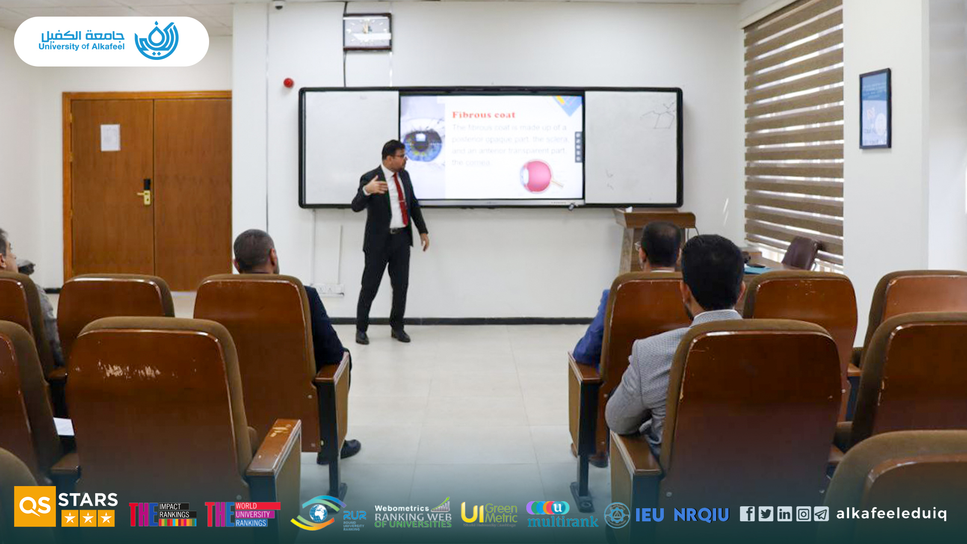 The College of Pharmacy at University of Alkafeel , Department of Pharmacology and Toxicology, organized a three-day training course : "Principles and Assessment of Visual Acuity." The course was held at the college from 3 to 5 November 2025, with the participation of several faculty members and students. The course was presented by: Asst.Prof. Dr. Saad Mashkour Waleed, Asst.Prof. Mohammed Karim Al-Husseini, and Lect. Dr. Yahya Ibrahim Yahya.