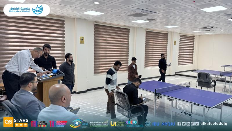 The Student Activities Division – Sports Department at University of Alkafeel organized a table tennis tournament on Monday, 17 November 2025. Students from various colleges participated, : College of Medicine, College of Medical and Health Technologies (Departments of Medical Laboratory Technologies, Anesthesia Technologies, and Radiology Technologies), College of Engineering Technology (Department of Computer Engineering Technologies), and College of Dentistry.