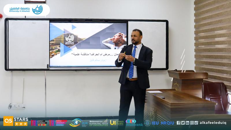 College of Pharmacy at University of Alkafeel , in cooperation with The Department of Psychological Guidance and Educational Orientation , organized an awareness workshop for fifth-year students on Wednesday, 19 November 2025, in the College of Pharmacy hall . The workshop was led by Asst.Prof. Dr. Salem Fayez Kadhim, and attended by faculty members, the Director of The Department of Psychological Guidance and Educational Orientation , Asst.Prof. Dr. Hussam Al-Obaidi, and a large number of fifth-year students.