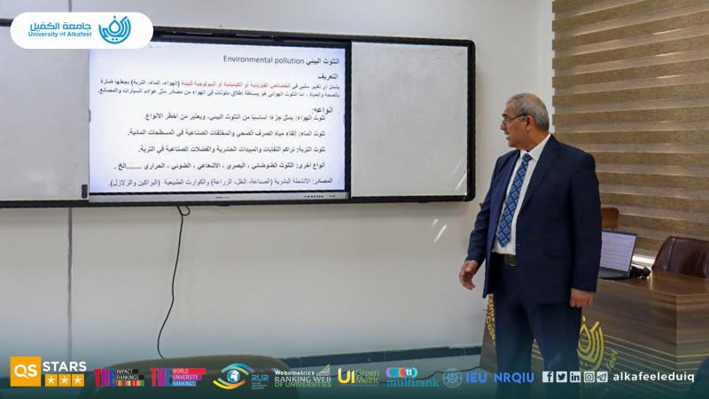 On Sunday,23 November 2025, Lifelong Learning Unit at the College of Pharmacy, University of Alkafeel , organized a scientific workshop : "Environmental and Air Pollution." The workshop was presented by Asst. Prof. Jawad Kadhim Jawad and attended by faculty members and staff.