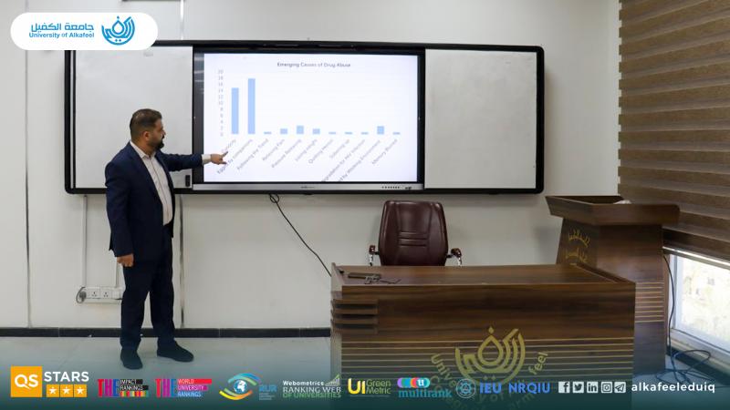 The College of Pharmacy at University of Alkafeel , under the supervision of Lifelong Learning Unit, organized a scientific seminar on Saturday, 22 November 2025, which addressed the classifications of narcotic substances, their natural and manufactured sources, and their mechanisms of action on the nervous system.
