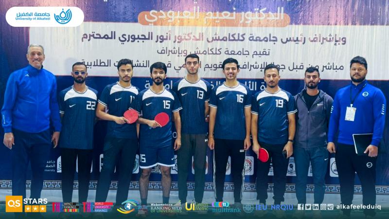 The University of Alkafeel delegation to the championship was headed by Asst. Lect.Ali Hatem Faleh Al-Karawi, Head of the Student Activities Department, accompanied by Coach. Nabil Kamel Al-Yassiri.