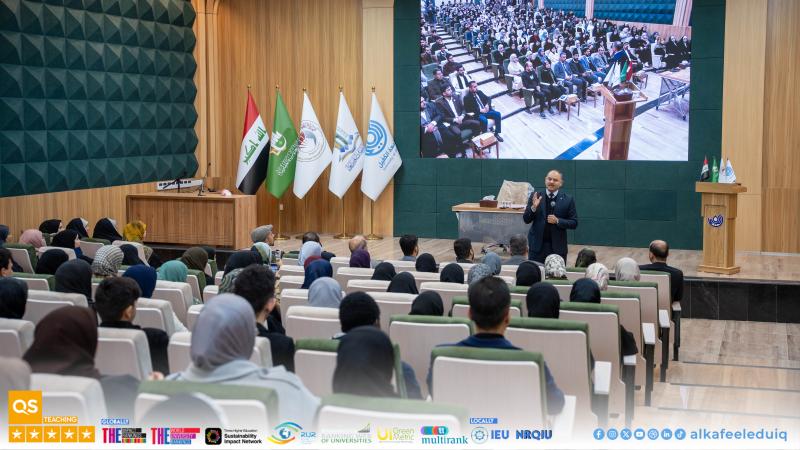 As it is committed for University of Alkafeel to the acts of direct communication with its students and supporting their academic progress, University President Prof.Dr. Nawras Muhammed Shaheed Al-Dahan met with first-year students from the Colleges of Science and Engineering Technology on Tuesday, January 13, 2026, in a meeting characterized by open dialogue and a friendly atmosphere.