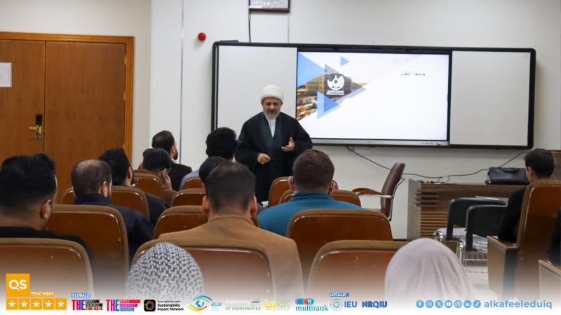 On Tuesday, 10 February 2026, the Lifelong Learning Center at University of Alkafeel organized a lecture : "Factors Leading to Extremism and Violence." The lecture was delivered by Asst. Prof.Dr. Hussam Ali Hassan Al-Obaidi, Director of the Department of Psychological Guidance and Educational Orientation , to fifth-year pharmacy students. The lecture addressed the concept of extremism versus tolerance, reviewing the motives that lead to violence. It stressed the importance of understanding these motives to prevent violence, promote tolerance and coexistence, and encourage students to join the volunteer team to boost awareness of extremism and violence, especially as they are about to enter the professional sector.